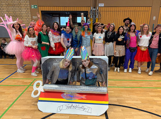 Bei unserer Karnevalsfeier in der Turnhalle erwartete uns ein buntes und abwechslungsreiches Programm, das von Tino aus der 3/4f und Lea aus der 3/4e mit viel Charme und guter Laune moderiert wurde.